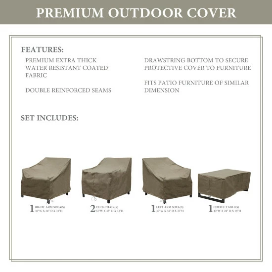 Protect your investment and add years of life to your outdoor furnishings with custom fit heavy duty patio covers. The elegant color allows these covers to blend into any home dΓ©cor palette as well as natural outdoor settings. Not only are they attractive, but their features provide the ultimate protection against the elements.