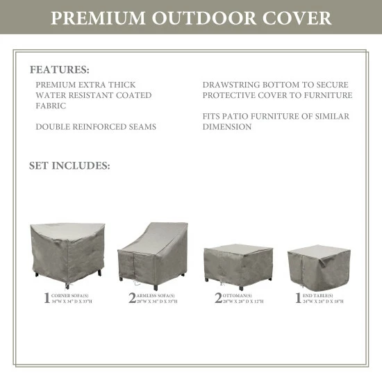 Protect your investment and add years of life to your outdoor furnishings with custom fit heavy duty patio covers. The elegant color allows these covers to blend into any home dΓ©cor palette as well as natural outdoor settings. Not only are they attractive, but their features provide the ultimate protection against the elements.