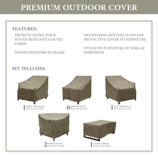 Protect your investment and add years of life to your outdoor furnishings with custom fit heavy duty patio covers. The elegant color allows these covers to blend into any home dΓ©cor palette as well as natural outdoor settings. Not only are they attractive, but their features provide the ultimate protection against the elements.