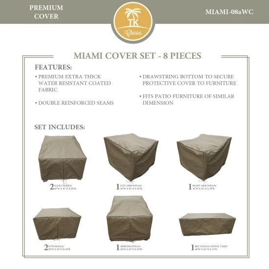 Protect your investment and add years of life to your outdoor furnishings with custom fit heavy duty patio covers. The elegant color allows these covers to blend into any home dΓ©cor palette as well as natural outdoor settings. Not only are they attractive, but their features provide the ultimate protection against the elements.